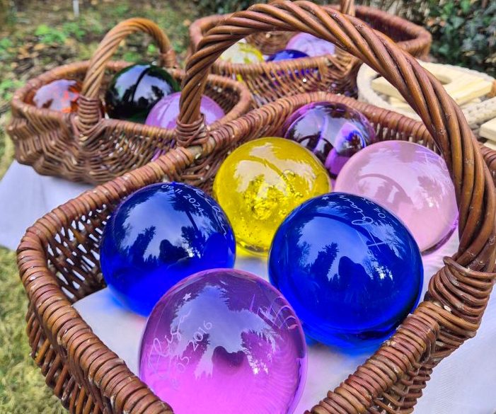 Die Erinnerungskugeln verbleiben für die Dauer eines Jahres auf dem Grabfeld.